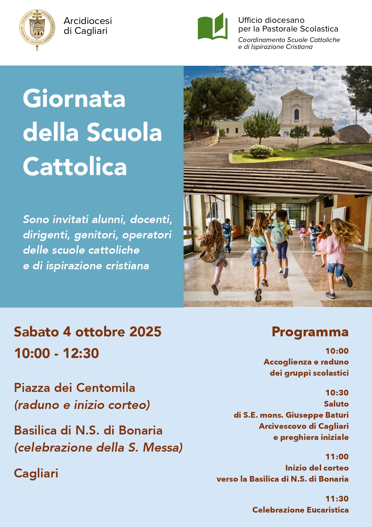 La Chiesa di Cagliari si prepara a vivere un appuntamento speciale: sabato 4 ottobre 2025 si terrà la Giornata diocesana della scuola cattolica e di ispirazione cristiana, un’occasione di comunione ecclesiale all’inizio del nuovo anno scolastico.