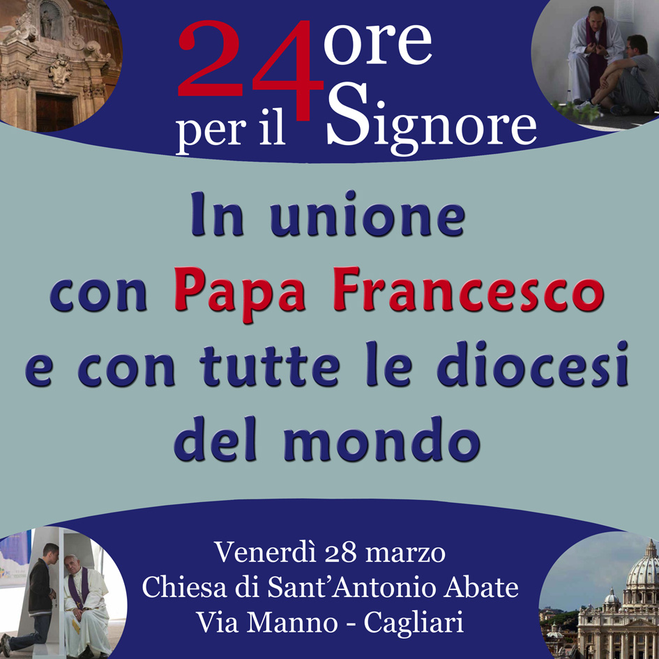 Anche la diocesi di Cagliari, tra il 28 e il 29 marzo, in unione con Papa Francesco, aderisce all’iniziativa «24 ore per il Signore». «Sarà – come ha ricordato il Pontefice dopo l’Angelus di domenica 23 marzo – sarà la festa del perdono, che avrà luogo anche in molte diocesi e parrocchie del mondo. Il perdono che ci dà il Signore si deve festeggiare, come ha fatto il padre della parabola del figliol prodigo, che quando il figlio è tornato a casa ha fatto festa, dimenticandosi di tutti i suoi peccati. Sarà la festa del perdono».
