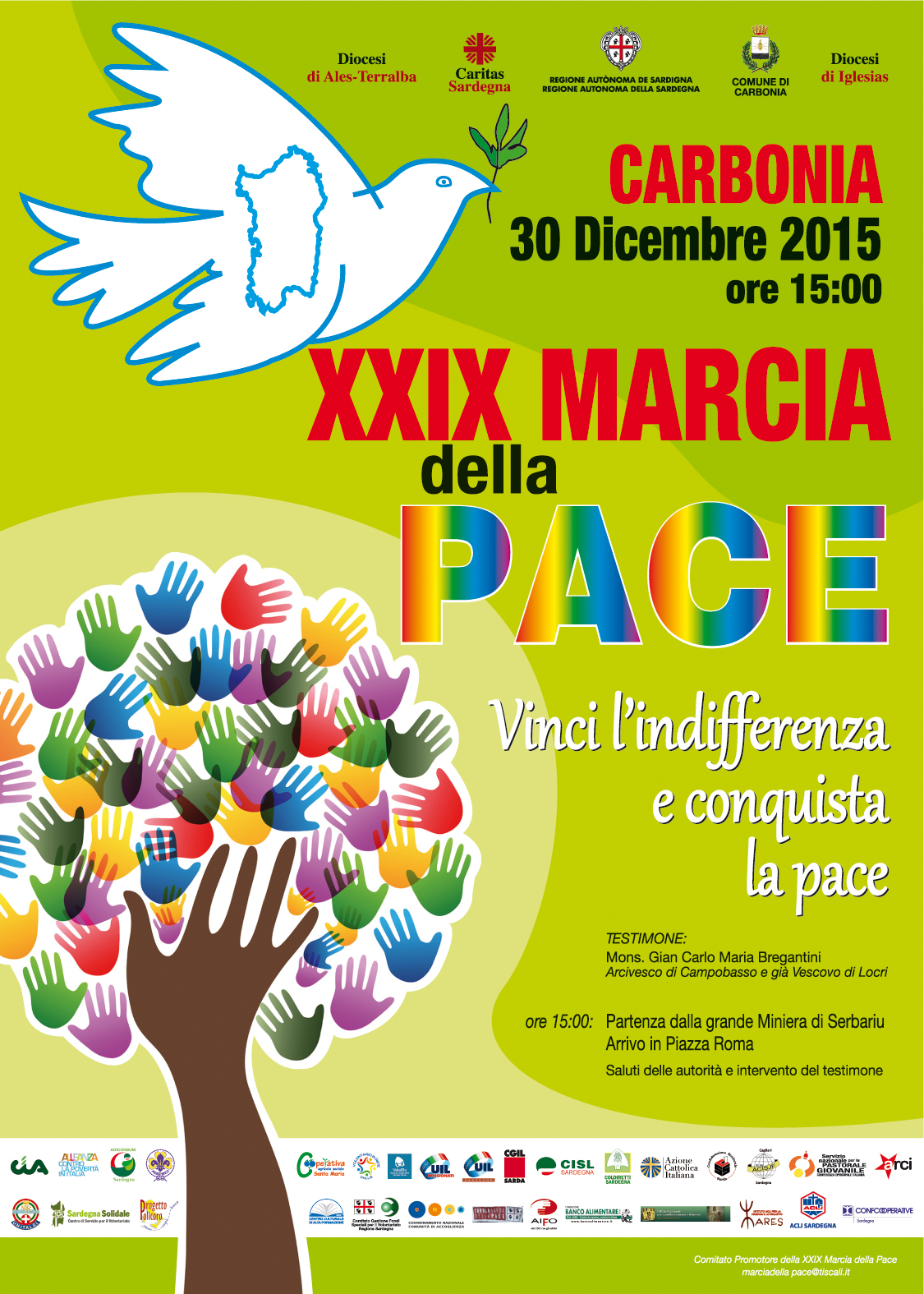 Si terrà a Carbonia mercoledì 30 dicembre 2015 la XXIX Marcia della Pace.