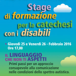 Il 25 e 26 febbraio 2016, nell’aula magna del Seminario arcivescovile, alle ore 17 si terrà uno stage di formazione per la catechesi con i disabili sulla comunicazione e la catechesi nelle condizioni dello spettro autistico. Lo stage è organizzato dal settore disabili dell’Ufficio Catechistico e sarà guidato dalla dott.ssa Maria Grazia Fiore. L’incontro è […]
