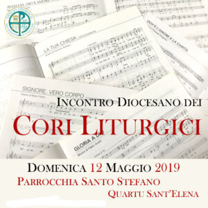 L’annuale Incontro Diocesano dei Cori Liturgici organizzato dall’Ufficio Liturgico Diocesano si terrà il 12 maggio 2019, quarta domenica di Pasqua, dalle 15.30 alle 20.00, a Quartu S.E., nella parrocchia di Santo Stefano. Interverrà don Giulio Madeddu, docente di Musicologia liturgica presso l’Istituto Superiore di Scienze Religiose di Cagliari e presso il CoLiMus (Corso per operatori […]
