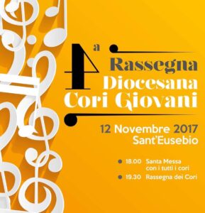 Si terrà domenica 12 novembre 2017, presso la parrocchia di Sant’Eusebio (Cagliari, via Quintino Sella) l’annuale rassegna diocesana dei «Cori giovani». Programma 18.00: Santa Messa 19.30: Rassegna dei cori >>> Locandina