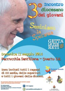Domenica 11 maggio 2014 si terrà il terzo incontro diocesano di pastorale giovanile. A questo terzo e ultimo importante appuntamento dell’anno pastorale sono invitati i ragazzi di III media, delle scuole superiori e tutti i giovani della nostra diocesi con i loro animatori ed educatori. L’incontro si svolgerà a Quartu Sant’Elena. Per partecipare alla giornata […]