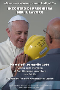 Mercoledì 30 aprile 2014, vigilia della memoria di San Giuseppe lavoratore, alle ore 20.30, presso la Cappella del Seminario Arcivescovile (Cagliari, via monsignor Cogoni 9), l’Ufficio diocesano per la pastorale sociale e del lavoro e il Centro studi sociali Paolo VI promuove un incontro di preghiera per il lavoro. Come ogni anno il 1° maggio, […]