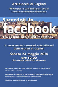 Sabato 24 maggio 2014 dalle ore 10.00 alle 12.30, presso la sala stampa della Curia diocesana (Cagliari, via mons. Cogoni, 9), si terrà il primo incontro dei sacerdoti e dei diaconi della diocesi di Cagliari presenti su Facebook. Tema dell’incontro sarà: «Sacerdoti in Facebook tra autenticità e testimonianza». Programma – Relazioni: […]