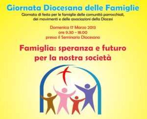 Domenica 17 marzo si svolgerà la Giornata Diocesana delle famiglie. Sarà un momento utile per contribuire alla riflessione in vista della settimana sociale di settembre 2013, dedicata alla famiglia, con il tema “Famiglia speranza e futuro per la nostra società”. La giornata – promossa dall’Ufficio per la Pastorale Familiare, guidato da don Marco Orrù – […]