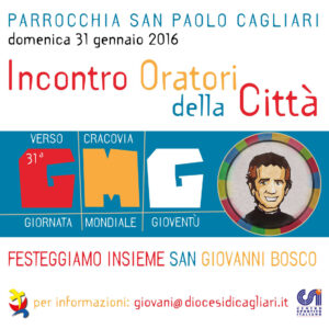 Domenica 31 gennaio 2016, festa di san Giovanni Bosco, si terrà l’incontro degli oratori della città di Cagliari. In questa particolare circostanza gli animatori e gli educatori avranno la possibilità di incontrare l’Arcivescovo e gli amministratori della città che si occupano dei Servizi Sociali e delle politiche giovanili. Per partecipare alla giornata sarà necessario iscrivere […]