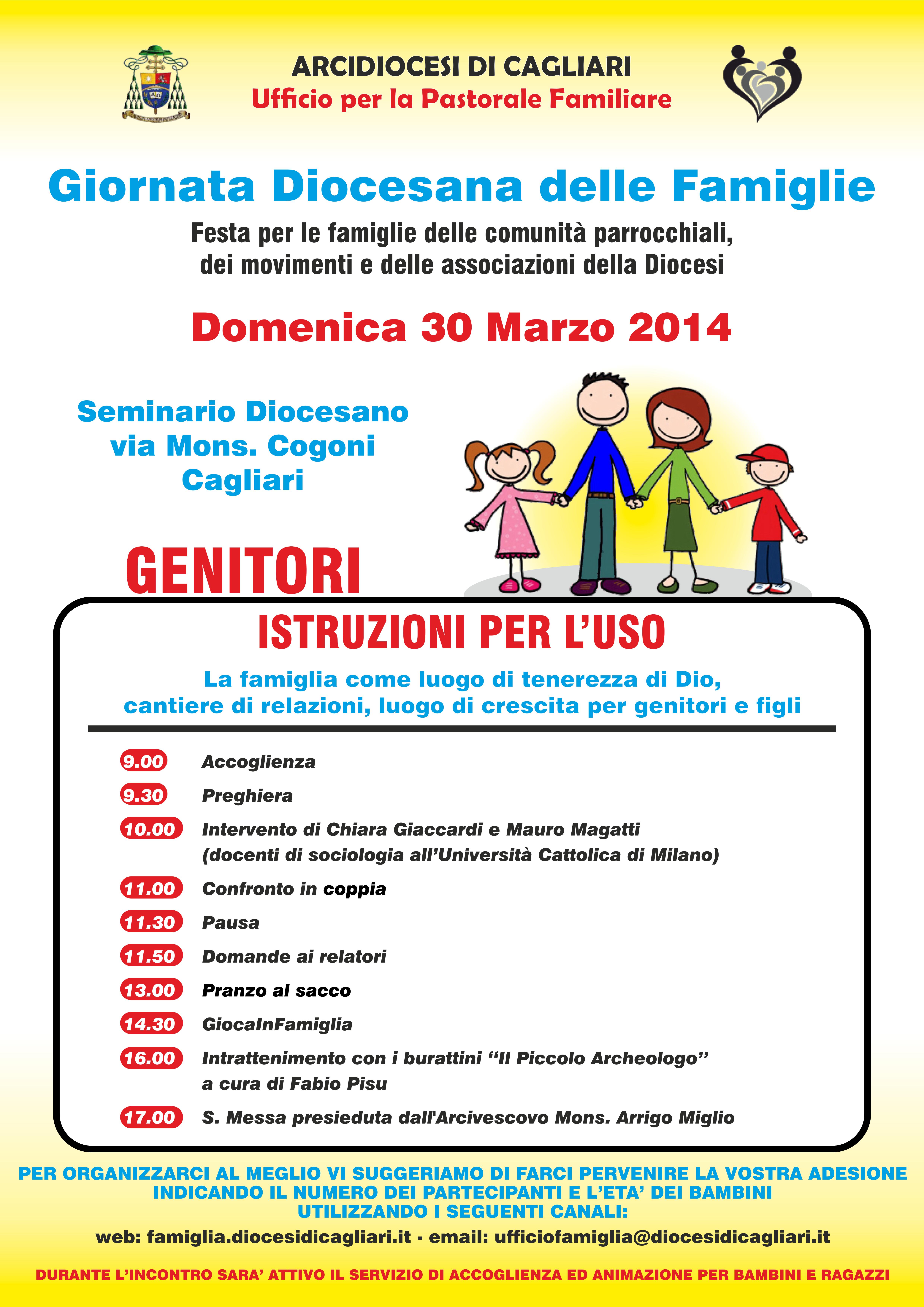 Domenica 30 marzo 2014 dalle 9.00 alle 18, presso il Seminario Diocesano di Cagliari, si terrà la Giornata Diocesana delle Famiglie.