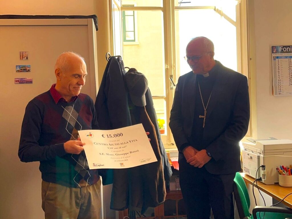Questa mattina l’Arcivescovo monsignor Giuseppe Baturi ha consegnato un assegno di 15.000 euro al referente del CAV, quale segno concreto dell’impegno della Chiesa di Cagliari a favore della vita. Un gesto che si inserisce in una più ampia riflessione pastorale e caritativa maturata nel contesto giubilare.
