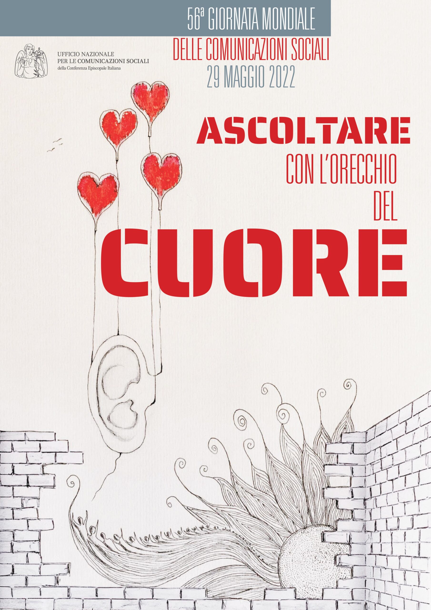 L’invito ad “Ascoltare con l’orecchio del cuore” si traduce nell’essenzialità dei tratti dell’opera di Walter Capriotti, artista contemporaneo che firma il manifesto (composto graficamente da Ottavio Sosio).