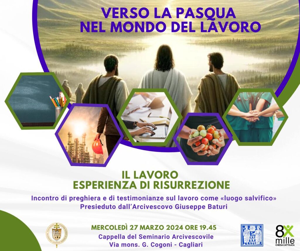 L’incontro di preghiera è in programma mercoledì 27 marzo con inizio alle ore 19.45 presso la cappella del Seminario arcivescovile (via monsignor Cogoni 9, Cagliari). Nasce da un’esigenza sorta all’interno della Consulta e si propone di condividere una riflessione comune, a partire dalla Parola di Dio e accompagnata dalle testimonianze, sul lavoro inteso come «luogo salvifico». In particolare, l’iniziativa intende favorire la ricerca di segnali di speranza e di vita alimentati dalla fede nel Risorto, su cui costruire relazioni, processi e progetti di promozione della persona.