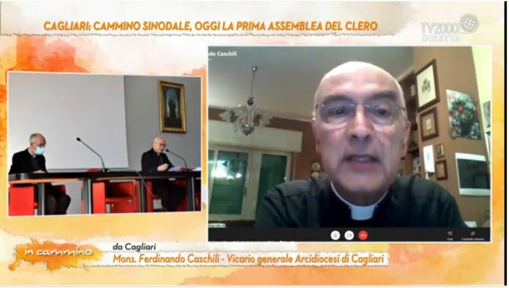 Nel pomeriggio di giovedì 14 ottobre 2021, monsignor Ferdinando Caschili, Vicario generale della Diocesi di Cagliari, è intervenuto su Tv 2000 nel corso del programma In Cammino in merito al significato del Cammino sinodale.