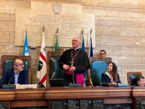 Questa mattina, giovedì 28 dicembre 2023 nell’aula consiliare del Palazzo civico di via Roma, il vescovo di Cagliari monsignor Giuseppe Baturi ha ricevuto dalle mani del sindaco di Cagliari Paolo Truzzu, l’onorificenza della Città di Cagliari “Medaglia d’Onore Ottone Bacaredda”. Il premio venne istituito nel 2004 e destinato da allora a una cagliaritana o un cagliaritano che ha mostrato particolare impegno nella vita sociale cittadina.