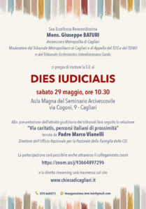 Sabato 29 maggio alle ore 10.30, presso l’Aula Magna del Seminario Arcivescovile in via monsignor G. Cogoni 9 in Cagliari, è previsto il “DIES IUDICIALIS 2021”.