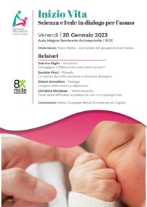 “Inizio vita. Scienza e fede in dialogo per l’uomo”. Se ne parlerà nel corso dell’evento previsto per venerdì 20 gennaio alle 18.30, presso l’Aula magna del Seminario arcivescovile di Cagliari (via monsignor Cogoni, 9), promosso dalla consulta diocesana per la Pastorale della Salute.