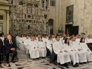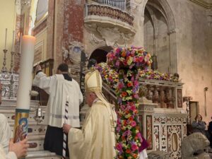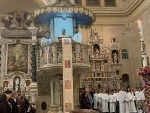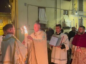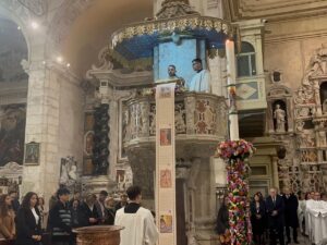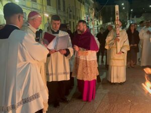 Nella notte della Veglia pasquale, cuore dell’anno liturgico, la Cattedrale di Cagliari ha accolto la celebrazione presieduta dall’arcivescovo monsignor Giuseppe Baturi. Una liturgia densa di segni e di parola, nella quale la Chiesa passa dalle tenebre alla luce, annunciando la risurrezione del Signore.