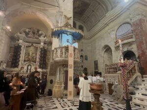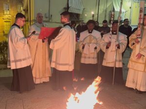 La liturgia della Parola ha ripercorso le tappe della storia della salvezza, culminando nella proclamazione del Vangelo della risurrezione. Dopo il canto del Gloria e dell’Alleluia, la comunità ha accolto l’annuncio pasquale, centro della fede cristiana.