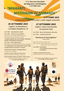 26 settembre 2025 alle ore 17, presso Sa Manifattura (viale Regina Elena, 33 a Cagliari) è previsto un incontro al quale parteciperanno la prof.ssa Laura Zanfrini (Università Cattolica del Sacro Cuore) su “La sfida profetica dei nuovi italiani: situazione attuale e prospettiva di speranza”, prof. Fabio Onnis (Presidente Confcooperative Cagliari) su “La cooperazione e le cooperative sociali: luogo e opportunità di inclusione e riscatto”. Le conclusioni saranno affidate a mons. Giuseppe Baturi. Coordina i lavori il diacono Enrico Porru, direttore dell’Ufficio diocesano Migrantes. Durante l’incontro sarà possibile visitare la mostra “Oltre i muri”.