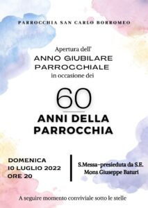 Domenica 10 luglio alle ore 20, presso la parrocchia San Carlo Borromeo (via San Carlo Borromeo 6, Cagliari), il vescovo monsignor Giuseppe Baturi presiede la celebrazione eucaristica, in occasione dell’apertura dell’anno giubilare per i 60 anni di vita della parrocchia, eretta canonicamente il primo luglio 1962 da monsignor Paolo Botto.