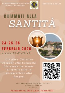 Nel cammino di preparazione alla Pasqua, l’Azione Cattolica della diocesi di Cagliari, Settore Adulti, propone alla comunità tre serate di spiritualità dal titolo “Chiamati alla santità”.