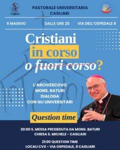Mercoledì 6 maggio, a partire dalle ore 20, l’arcivescovo monsignor Giuseppe Baturi sarà protagonista dell’iniziativa promossa dalla Pastorale universitaria di Cagliari dal titolo “Cristiani in corso o fuori corso?”.