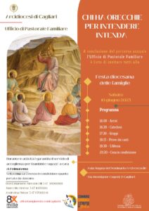 Sabato 10 giugno alle ore 16.00, presso l’Aula magna del Seminario arcivescovile (via monsignor G. Cogoni 9, Cagliari), si conclude, con la festa diocesana delle famiglie, il percorso che l’Ufficio di Pastorale familiare ha proposto quest’anno, sul tema “Chi ha orecchie per intendere intenda”.