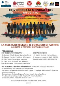 Venerdì 20 giugno alle 17, presso lo Spazio Michelangelo Pira (via Brigata 10, Quartu Sant’Elena) è previsto l’evento «La scelta di restare, il coraggio di partire. Il diritto di partire e diritto di restare»,  nell’ambito delle celebrazioni previste in occasione della Giornata mondiale del rifugiato.