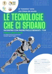 Questa sera (giovedì 9 marzo) alle 20.30, nell’Aula magna del Seminario arcivescovile di Cagliari (via monsignor Cogoni 9), è previsto un incontro pubblico con padre Paolo Benanti, teologo e religioso francescano del Terz’Ordine regolare. Al centro dell’appuntamento, inserito nel Cammino sinodale, il tema «Le tecnologie che ci sfidano».
