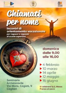 Domenica 12 maggio dalle 9 alle 16, presso il Seminario arcivescovile di Cagliari (via monsignor G. Cogoni, 9), è previsto il terzo della serie di incontri promossi dalla Pastorale vocazionale rivolto a ragazzi e ragazze delle scuole superiori.