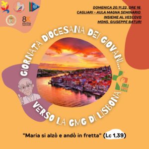 Domenica 20 novembre 2022, alle ore alle 16 presso l’Aula magna del Seminario Arcivescovile di Cagliari (via monsignor Cogoni, 9), la Pastorale giovanile, accompagnata dal vescovo monsignor Giuseppe Baturi, avvia il cammino di preparazione alla Giornata mondiale della Gioventù, prevista a Lisbona dal 1 al 6 agosto 2023.