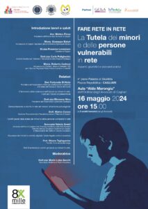 Giovedì 16 maggio dalle 15, presso l’Aula Aldo Marongiu (Palazzo di Giustizia, piazza Repubblica Cagliari), è previsto l’incontro promosso dal Servizio diocesano tutela minori e persone vulnerabili sul tema “Fare rete in rete. La tutela dei minori e delle persone vulnerabili in rete. Aspetti giuridici e psicoeducativi”. Tra i relatori don Fortunato Di Noto, fondatore dell’Associazione Meter per la lotta contro la pedofilia e la tutela dell’infanzia in Italia e nel mondo.