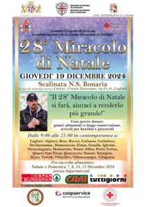 Venerdì 13 dicembre 2024 alle ore 9.30 nella sala stampa della Curia arcivescovile di Cagliari (via monsignor G. Cogoni 9), durante una conferenza stampa, sarà presentata la 28ma edizione di “Miracolo di Natale”. Gennaro Longobardi, assieme all’Arcivescovo Baturi e al direttore della Caritas diocesana don Marco Lai, illustreranno i dettagli dell’iniziativa di solidarietà a favore dei più fragili.