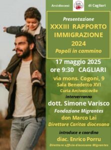 Sabato 17 maggio 2025, alle ore 9.30, presso l’Aula Benedetto XVI della Curia Arcivescovile di Cagliari (via mons. G. Cogoni, 9), si terrà la presentazione del Rapporto Immigrazione 2024 promosso dall’Ufficio diocesano Migrantes in collaborazione con la Caritas diocesana.