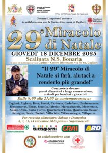 Martedì 9 dicembre 2025 alle ore 9.30 nella sala Benedetto XVI della Curia arcivescovile di Cagliari (via mons. Cogoni 9), durante una conferenza stampa, sarà presentata la 29ma edizione di “Miracolo di Natale”. L’arcivescovo di Cagliari monsignor Giuseppe Baturi, assieme all’ideatore dell’evento Gennaro Longobardi e al direttore della Caritas diocesana don Marco Lai illustreranno i dettagli dell’iniziativa di solidarietà a favore dei più fragili.