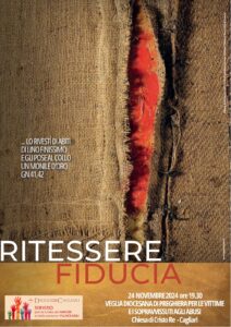 Domenica 24 novembre alle 19.30, presso la Chiesa di Cristo Re a Cagliari (via Antonio Scano 97), è prevista la veglia di preghiera diocesana per le vittime e i sopravvissuti agli abusi, presieduta dal vescovo monsignor Giuseppe Baturi.